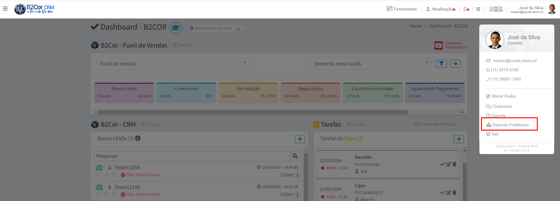 Ao clicar no ícone indicado abaixo, é possível reportar erros na sua ferramenta. Um pop-up aparecerá, selecione a área onde encontrou o erro com o seu mouse e clique em “Próximo”. Depois, siga as instruções: