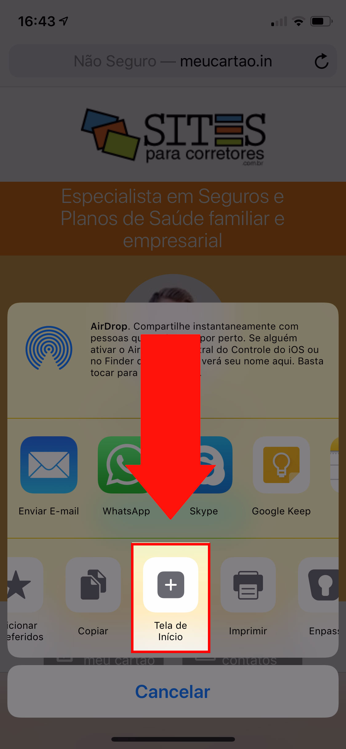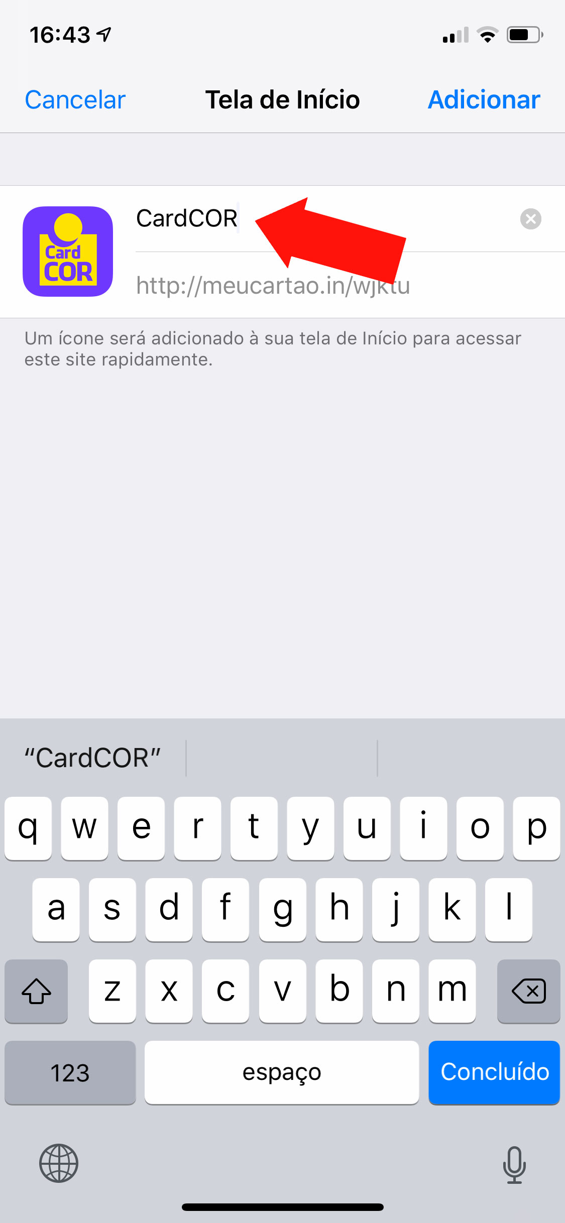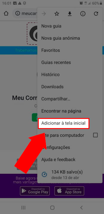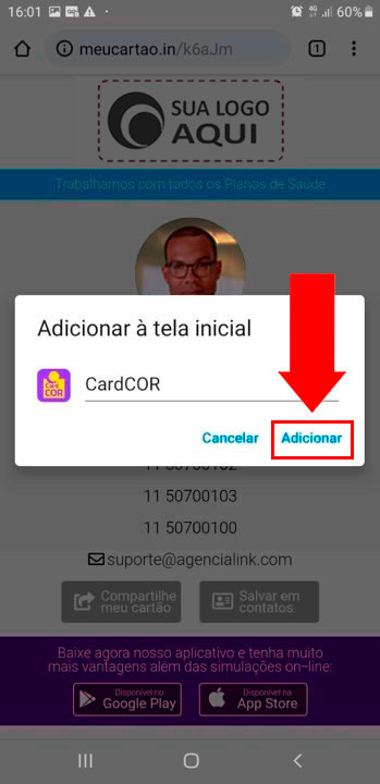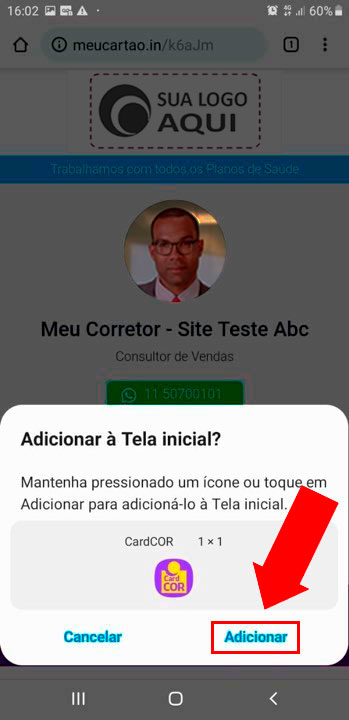 Como salvar o CardCOR na tela inicial do celular